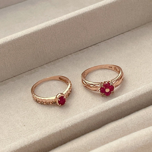 Ruby Flower & Oval Ring